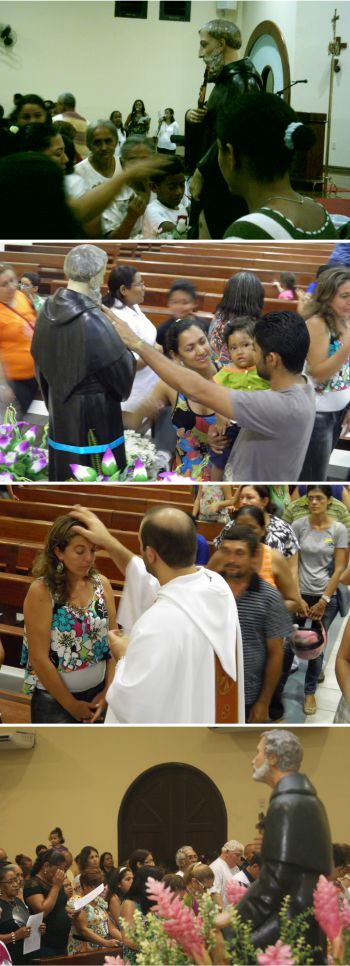 Dir.: E pela intercessão de São Peregrino venha sobre nós, nossas famílias e todos os enfermos, a bênção de Deus Todo-poderoso, que é Pai, Filho e Espírito Santo.